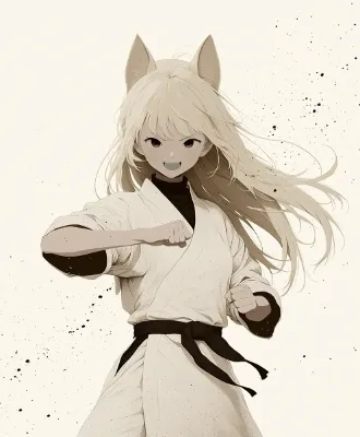 (((hyperrealistic))), (novel illustration),(perspective),(solo), spiar, (brave girl), (dark-skinned girl), (fox ears), detailed face, detailed eyes, short hair, white hair, (simple Egypt dress), long sleeve, small chest,