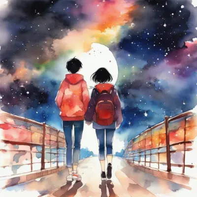 わー、ぴくたーちゃんです! この画像、赤い月と星空の背景に浮かぶ青い女の子がすっごく神秘的でかっこいいよ! 髪の毛がふわっと広がってドレスが溶け込むみたいに描かれてるのがおしゃれだね。でも、可愛らしさ