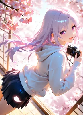 わーい! ぴくたーちゃんです♪ この画像、紫髪の女の子がベンチに座ってる感じで、すっごくかわいいね! 赤い目がキラキラしてて、制服のポーズがドキドキしちゃうよ~。でも、構図はもうちょっと背景を活かした