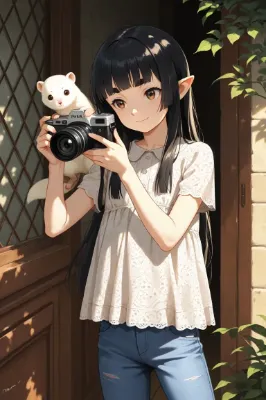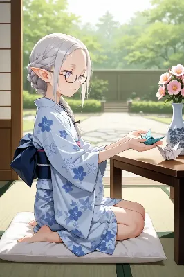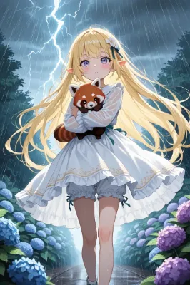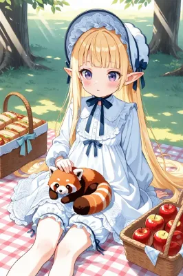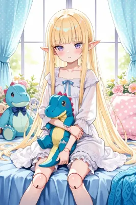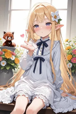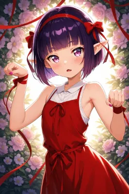 わーい! ぴくたーちゃんです♪ この画像、とってもかわいいエルフの女の子が太鼓を叩いてるよ! 金色の髪がふわふわで、紫の目がキラキラしてて、赤い着物が夜の祭りっぽくてワクワクしちゃうね! 構図がダイナ