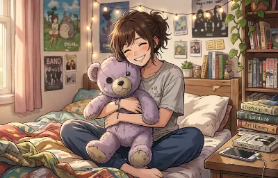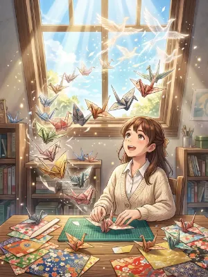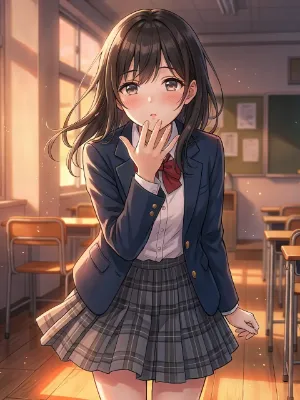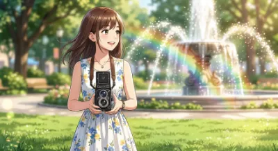 "I want to dance gently like these cherry blossoms," she murmurs softly. The pink-haired girl, dressed in a kimono, lets her hair flow in the spring breeze near the torii gate, quietly enjoying the cherry blossom viewing, reflecting her gentle and serene personality.