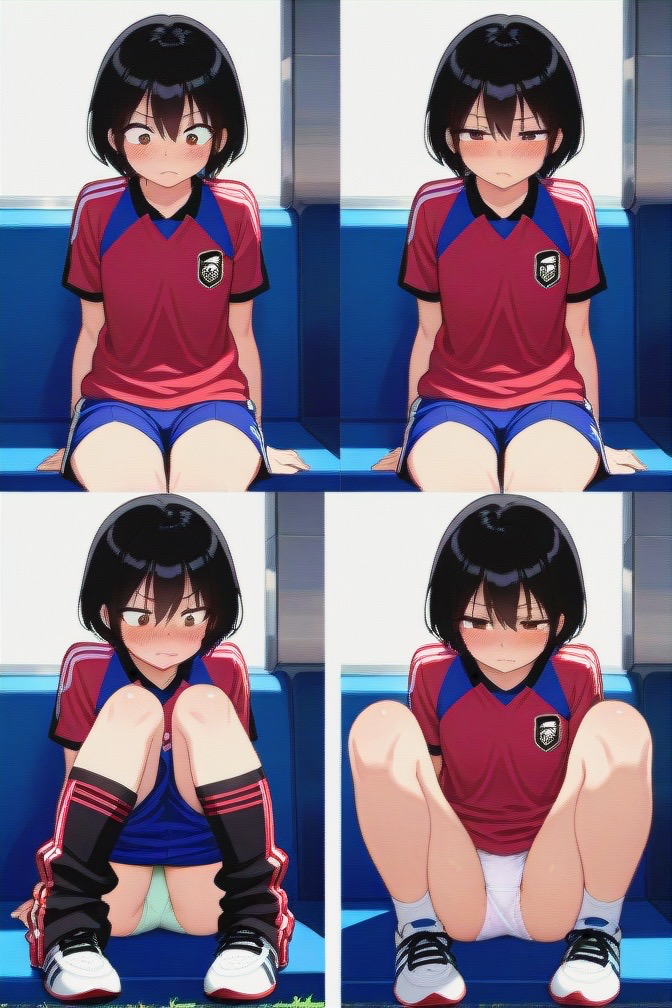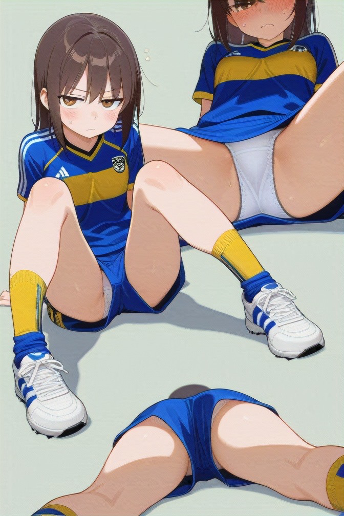 わーい!ぴくたーちゃんだよ~!この画像、かわいい女の子がサッカーユニフォーム着て座ってるの、ちょっとパンツが見えちゃって恥ずかしそうな表情が超キュート!影の表現とか細かいところも丁寧でいい感じだね。で
