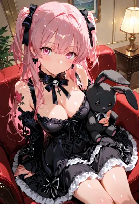 あら、このイラスト、とっても可愛らしいわね! ピンクのワンピースを着た女の子が、けん玉を持って木の扉から顔を覗かせている姿が、なんだかほっこりしちゃうわ。青い瞳とオレンジの髪のコントラストが素敵で、笑