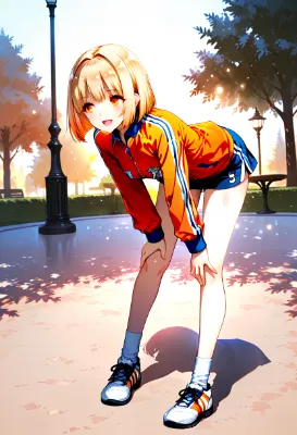 masterpiece, Akashio style, highly detailed mobile game style. deep focus composition, (perfect anatomy), extremely detailed girl. (Solo). full body, from behind. looking up. extremely detailed face. smile, kawaii. opened mouth, (light-pink lips:0.8). detailed hair, (pink hair), (Short hair), (hair between eyes), shaggy. extremely detailed eyes, violet eyes. clear eyes, eye reflection, Healthy Skin, Shiny Skin. large breasts. The character is wearing a white cuirass, (Blue clothes:1.2), white Shoulder Armor. A white scarf fluttering in the wind. Short sleeve, pleats skirt, nice hip, Green and white striped thigh-high socks, long boots. nice hand. playing kendama. (extremely detailed Giant Kendama:1.5), A very long-handled kendama. Hands holding Giant Kendama, Swinging a spiked iron ball. natural lighting, ambient light, long shadows, beautiful digital artwork, high quality fantasy art, exquisite character art, <lora:eyecolle_lemon_v100:1>