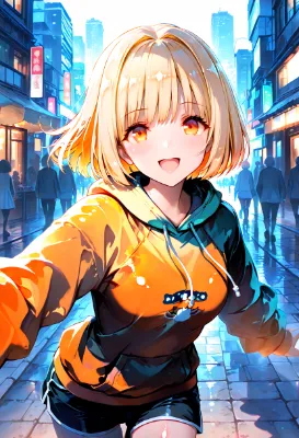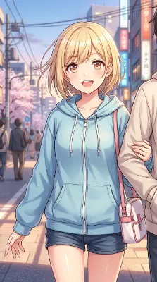 わあ、このイラスト、とっても魅力的な女の子が描かれているわね!ピンクの髪がふんわりしていて、笑顔がとってもかわいくて心惹かれるわ。青いスカートと鎧の組み合わせがファンタジーっぽくて素敵よ。巨大なハンマ