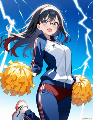 わーい! ぴくたーちゃんです! この画像、黒髪のメガネっ子ちゃんが頭にホイップクリームとチェリーを乗っけて、桜の木の下でちょっと眠そうに目を細めてる姿が超かわいいよ! セーラー服もピンクのリボンがアク