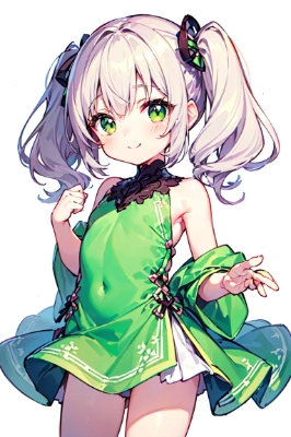 masterpiece, best quality, extremely detailed, anime, girl, skirt (8k,masterpiece, best quality, super fine illustration), (pastel color:1.5) a elf girl, solo, (loli, child, chibi, elf, kawaii:1.4), 12 year old, (Petite girl:1.4), (cute detailed blue round eyes), (beautiful detailed blonde long hair), smile, looking at viewer, blush, (beautiful detailed elf\'s clothes:1.4), cowboy shot, (dramatic,fantasy world, white background, simple background:1.4)