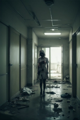 masterpiece, best quality, best quality drawn, ((a mummy girl)), (bloody white wrap a bandage around full body), (pale green skin), expressionless face, slender body, midnight, (pitch darkness), no light, indoors, (ruined cobbled dungeon), (inside the pyramid), horror, footage from a surveillance camera, interior photo, realistic illustration, insanely detailed, Documentary, (a mummy in distance in distance), ((moody lighting)),