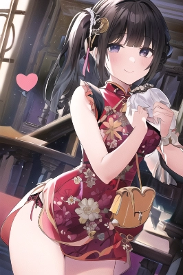 masterpiece, best quality, "China-style maid" - Chinese-style maid outfit. It is see-through with lace and is decorated with Chinese-style patterns and bell decorations, giving it an exotic look. na blur, colorful, hdr, blunt bangs, braided hair, twintails, side ponytails, bob, shostakovich, girl, solo, underwear, navel,., with blush cheeks, official art, {{ultra-detailed}}, {{high resolution}}, dynamic fuzziness, colorful, hdr, blunt bangs, braid hair, twintail, side ponytail, bob, Shostakovich, girl, solo, underwear, navel, lying on bed, embarrassed,