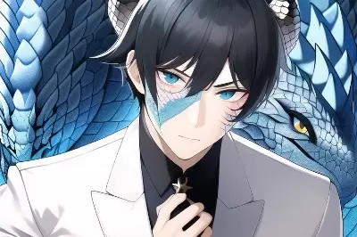 masterpiece, best quality, {1boy,man,solo},{{{{dragon horn}}}},animal ears,Purple hair,calmgentle,kind,{{{{{tender}}}}},gently smile,eyelashes,round eyes,blue jersey,jers