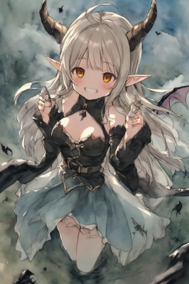(extremely detailed fine touch:1.3), (sketch,watercolor painting,aesthetic art,light tone:1.3), (masterpiece, best quality,official art:1.3), (Fantastic:1.4), (1demon girl :1.3), (great smile,blush,detailed moist eyes,stick out tongue), (from above, aerial view:1.2), (fantasy:1.4), Region:ancient babylonia, above cloud, foggy, (wide shot:1.3), (detailed wyvern, jet-black horns,wings,craw,tail,and detailed scales:1.2), dynamic pose, flying, floating, airborne, looking afar, outstretched arms.BREAK,1demon girl, (perfect hands:1.3), (Detailed, long hair:1.2), (medium_breasts:1.3), (detailed large brown eyes:1.2), long_shot, (from forward:1.2), (jet-black wyvern:1.3), hug pose, bare_shoulder,long robe, ((robe swaying in the wind)), lustrous skin, static, powerless, realistic, (Subjective perspective), (light-shadow symmetry), (particle light,natural light,light rays,reflection,shadows,ray tracing:1.0), (succubus:1.2), breathing on her shoulder, foggy, (stop wind),Her name is ZENKA, Born on August 1st, 16yo, Her hair is semi-long with straight, Detailed demon lord,(elf ears:1.3), (light tone:1.3),(detailed golden laughing kettle,like laughing kettle,grin,half-opened mouth:1.3), Trick or TreatEat, drink, and be scary!