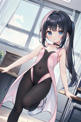 1girl, child, 12years old,(masterpiece, best quality, ultra-detailed) ultra detailed, official art,shoot from below, dynamic poses, dynamic angle, close-up, ((pink leotard)), ((white full-length tights,:1.3)) pony tail, black hair, cute girl, slender, flexible body, smile, grim, gentle curve of the belly, full split,BREAKCreate an image of a ballerina in a needle pose, one leg lifted skyward, arms in harmony. She wears an ornate bodice and a white tutu, casting a sharp shadow on a grey floor, embodying serenity and disciplineBREAK((Simple ballet studio, Nothing around Spacious flooring studio,:1.2)), (Bright light and scenery flood in through the window, clear glass),,