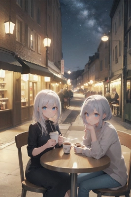 masterpiece, best quality, extremely detailed, anime, <lora:flat2:-1> <lora:hairdetailer:1> , cat, dog, a pretty woman, silver hair, blue eyes, two people, twin, personification, sisters, colorful, healing,