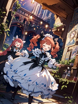 (3+girls, multiple girls, chibi:1.4), (aniversary, confetti, happy, party, smile:1.2)