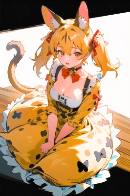 lying, on bed, on stomach, (she grips a game controller in her hands, grasp a game controller:1.4), (playing, playing the Game, gamer, headphone:1.3),, (masterpiece, best quality, top quality, ultra detailed, 8k, highres, HDR, beautiful detailed:1.4), (Otaku, Bisyoujo, Anime art, illustration:1.4), AzurLane, smile, large breasts, from below, zettairyouiki, cowboy shot, ezo, 1girl, solo, animal ears, fox ears, long hair, fox tail, blonde hair, white pleated skirt, brown gloves, brown fur trim, white bowtie, yellow legwear, yellow pantyhose, long sleeves, yellow necktie, white undershirt, hair between eyes, very long hair, fur-trimmed sleeves, fox girl, bangs, orange eyes, orange blazer, brown loafers, brown tipped ears, brown tail, <lora:ezo:0.7>