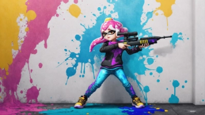 16K, ultra detailed, 1girl, paint, wall painted with colorful paint background, colorful picture, (vivid color:1.5), fantastic picture,