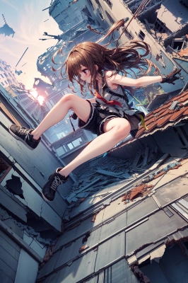 彼女たちが生まれたときには既に打ち捨てられていた文明 富も名誉もない、悪い意味で「平等」な世界 彼女たちは瓦礫を自由に駆け抜け、文明を取り戻そうとする 「生まれてこの方、一度もまっすぐ立った事なんか無いぜ!」 笑いながら語る 傾いた家屋も、崩落寸前のビルも、全て彼女たちにはただの庭 己の肉体だけを頼りに、庭に落ちているものを拾う人生 「先月は3人位落っこちてこの生活終わらせちゃったな 多分アタシもそんな最期じゃないの?」 彼女たちは「失われた文明」を取り戻し、それを売りさばいて生活している 転落する者、崩落する建物と運命をともにする者 彼女たちの生活の終わりは様々で、決して華やかではない生涯だ もし、「すごいお宝」を見つけてその後困らずに生活できるとしたら? 「それは夢だけどな、今更まっ平らな地面になんて戻れないぜ」 そんな彼女たちを、「まっ平らな地面」でしか生きられない者はこう呼ぶ GET BACKER