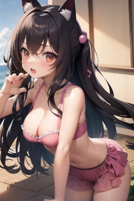 (((very petite girl, 18 years old, cute face, baby face:1.8, cat ears, pompom in cat ears, )))