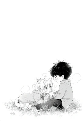 1boy,{{{hetero}}},love manga (medium), pastel moody atmosphere,chibi comic style,From side,{very aesthetic,best quality}, super resolution,little child cat girl, child body,:3, =_=, blush breathing, middle hair,intricately super resolution background,sofa in living , super sweet mood ,fawn on for him, kawaii comical touch sheet, hugging characters,2shot lovers,eye contact,, best quality, amazing quality, very aesthetic, absurdres