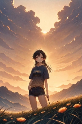 (((Masterpiece, High Quality, close up center, 8k, Best Quality, high resolution, orange hair,close up upper,from bottom))),Detailed background with fine lines,vibrant colors,teenage girl overwhelmed with unbridled euphoria,face lit up with brilliant ecstatic smile,eyes crinkled shut from sheer joy,mouth opened wide revealing perfect teeth,shell bra,arms flung out wide embracing sacred presence,long locks billowing as divine feminine entity descends in radiant glow,angelic features bathed in celestial light,an expression of pure rapturous bliss,oceanic feeling of unity with the cosmos,every pore flooded with enlightened serenity,a look of someone experiencing profound spiritual transcendence,transfigured by the splendor of ultimate truth revealed