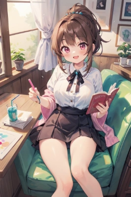 masterpiece, best quality, extremely detailed, anime <lora:flat2:-0.8> <lora:noline:0.5> , sword, girl, ponytail, longhair, brown hair, pink eyes, princess, colorful, watercolor, fantasy, training, crying, tears, sword fighting, practice, sad, big breasts, Thighs, miniskirt, Thigh emphasis, ,
