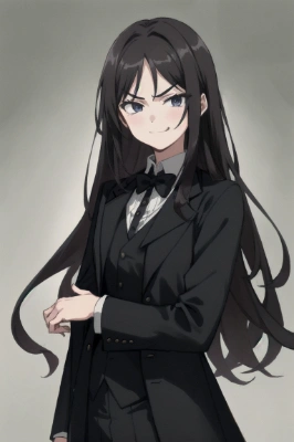 masterpiece, best quality, extremely detailed, anime,1girl,red eyes,dark purple hair,long hair,blunt bangs,(evil smile:1.2),Gothic dress,butterfly flying around,Gothic dress, BREAK , magic circle,Inferno,blue fire,bloody magic,looking at viewer,fantasy ,(degenerating:1.3),dark theme <lora:eyecolle_grape_v100:1> ,,,,,,