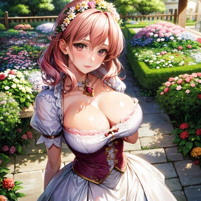 best quality, masterpiece,1milf, solo, turn off the light, stand light, kawaii milf,35 years old,hdr,eyes,gleam pink medium hair ,(realistic:1.2),large breast,large eyes,round face,resigned look,magical girl,fighting stance,(beautiful garden:1.5),most spectacular magic,She's hungry for a man, <lora:add_detail:0.5>