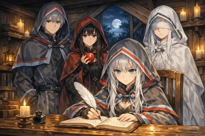 少女がクラゲたちと一緒に海の中を浮遊している様子を描きました。