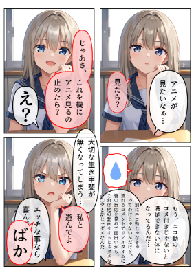 良い表情(笑) 自分の話ですが、セリフに合う表情が生成出来なくて、表情の生成の偉い人(上手い人の意味)って誰かなーと考えた時、真っ先に浮かんだのはt2-mさんでした。でもプロンプト公開されてない;;(笑)