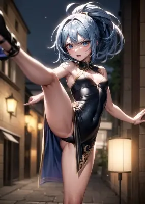 <lora:flat2:-0.8>, absurdres, highres, masterpiece, best quality, super fine illustration, ultra-detailed, 8k wallpaper, (photo background:1.3), realistic:1.2, from side, leaning forward, BREAK (2girls facing each other :1.2), (2girls, fantasy clothing, blue hair, medium hair, small breasts, dark skin) BREAK ((serious:1.3)), ((ultra detailed face and eyes:1.3)), cinematic lighting, cinematic shadow, detailed light, overexpose, cinematic postprocessing, cinematic composition, strong rim light, detailed rim light, ambient occlusion, ray tracing, chromatic aberration, specular reflection, HDR, drop shadow, core shadow BREAK sweat blush, shiny hair, shiny skin, shiny clothes,