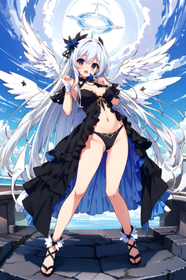 Clear facial expressions,Clearly,Standing picture like a V-tuber, all the following details need to be very detailed and realistic. lazy and has the image of a deadly sin. Standing, full body painting of a very cute and beautiful chibi anime girl, standing, with long hair and clothes, mostly black, but also red, blue and purple, always with a sleepy look,Marsh Kyrielite,younger people,concert,night view,fantasy,female knight