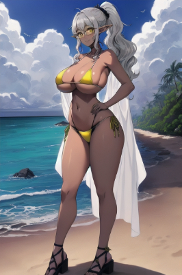 masterpiece, best quality, extremely detailed, anime, 1girl, asuna (blue archive), solo, extra long hair, yellow hair, cleavage, gigantic breasts, thighhighs, halo, gloves, bow, smile, open mouth, hair over one eye, fullbody, <lora:sensualface_type2:1> <lora:eyecolle_chrysanthemum_v100:1> pale blue Yukata, sandals, bamboo grass, Milky Way, starry sky,,,,,,,,,,