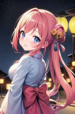 (((ultra pink hair, straight hair, side hair, chignon, )))