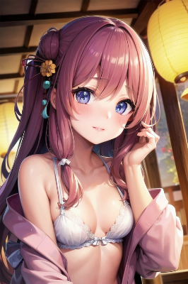 (((japanese yukata, open clothes, shelf bra, medium breasts, cleavage, )))