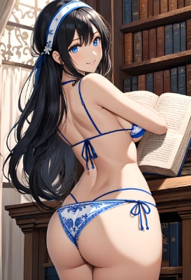 masterpiece, best quality, extremely detailed, anime, 1mature woman, solo, pixie cut, earrings, green eyes, brown hair, cleavage, short hair, swept bang, huge breasts,, (micro violet and white bikini, sideboob, underboob:1.3), , sandal,sea