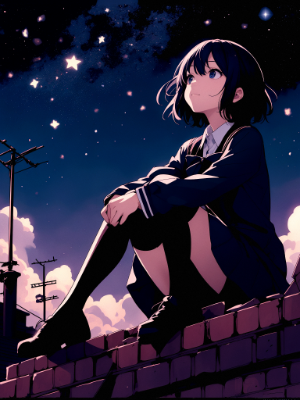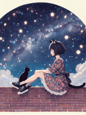 (Orange background:1.3), (blurry background:1.3), (extremely detailed fine touch:1.3), (hard light, studio light, light rays, dappled light, reflection, shadows, ray tracing:1.0), (rough sketch:1.5), (2D:1.3), ///, kawaii girl, Orange background, very delicate and detailed handwritten illustration, flat coloring with no sense of depth, girl with long blonde hair, cat ears, holding a black cat, sneakers, sitting on bricks, flower