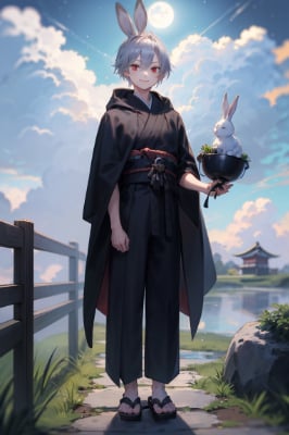 お題の「ペット」にちなみ、拙著、架空の戦国時代を描く和風ファンタジー歴史小説 『呪士道ー Road to Jushiー』 (※下記URL参照) の主人公、〝呪士〟という呪術師的な武士の兵頭雷童丸(ひょうずらいどうまる)と、その使い魔の〝鉤兎(こうと)〟という中国のウサギの幻獣・三日鎚(みかづち)を作成しようとしたのですがなかなかうまくいかない……(;´д`) これが限界でした。