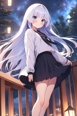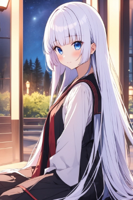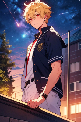 学校帰りの夕暮れ時、星が瞬き始めた空の下、彼はふと立ち止まり、いつもの日常を感じている。特別ではないけれど、なんだか心地よい、そんな瞬間を切り取ったワンシーン。