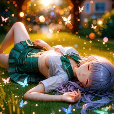 1girl ,10yo cute loli gyaru (blush sleeping, wolfcut hair, open school shirts, revealing micro checked skirt), well-fleshed shiny skin, glowing eyes, hoop earrings