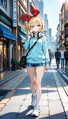 1girl,solo,young child,blonde hair,short hair,blue eyes,(hair bow:1.3),red bow,(gummy candy:1.3),holding candy,curious expression,(touching candy:1.2),exploring texture,small hands,petite figure,standing,full body,casual wear,colorful dress,white socks,cute shoes,indoor,playroom,toy-filled background,soft lighting,pastel colors,(anime style:1.3),cel shading,clean lines,chibi-like proportions,(large eyes:1.1),rosy cheeks,small nose,(detailed candy:1.2),various candy shapes,gummy bear,gummy worm,sparkle effects,(depth of field:1.1),blurred background,focus on hands and candy,gentle shadows,(kawaii:1.2),child-like wonder,(soft textures:1.1),delicate features,(fluffy hair:1.1),subtle hair shine,(vivid candy colors:1.2),contrasting candy and skin tones,(masterpiece:1.2),(best quality:1.3),(very aesthetic:1.1),(absurdres:1.2),