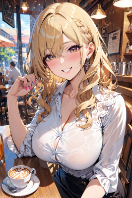 いいね 15推薦カフェでコーヒーを一杯152024年09月10日 03時00分使用モデル名:DALL-E3対象年齢:全年齢スタイル:イラスト#!学習利用OK#!小説利用OK#!i2i利用OK#!合成利用OK#オリジナル#金髪#お嬢様#巨乳PromptsNegativePromptsParameterOther(best quality),(masterpiece),(ultra detailed),1 lady, long hair, blonde hair, (spiral curls), (white blouse), sitting, cafe, date, big breasts, smileCopy生成情報葉生(yesheng)