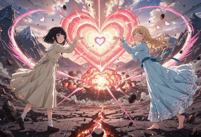 lyh, anime, 1man and 1girl, masterpiece, best quality, very aesthetic, absurdres, perfect anatomy, 8k, extremely detailed, official art, extremely detailed eyes and face, ultra-detailed background, Very delicate and textured costumes, Vibrant colors, High transparency, dynamic angle, dynamic pose, dynamic composition, close-up, from above , looking away,