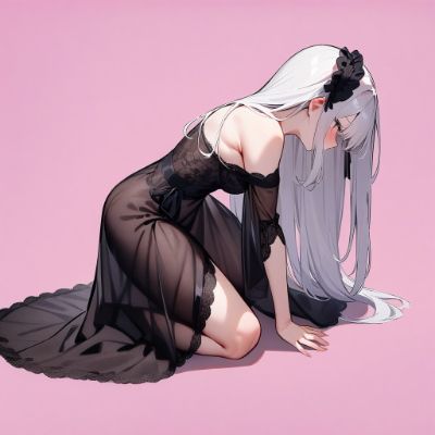 1girl, black hair, green eyes, long hair, brown skin, elf, (black dress:1.2), turtleneck, (slingshot dress:1.1), looking away, face focus, earrings,