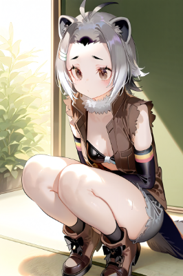(upskirt:1.4),smile,from_below,, 1girl,collared peccary \(kemono friends\), animal ears, tail, brown eyes, black hair, long hair, low-tied long hair, small breasts,
