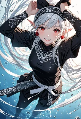 8K,((cinematic light,masterpiece,best quality,Ultra extremely detailed,perfect anatomy,detailed,high-resolution,highres,extremely detailed,sharp focus:1.5)),((high-contrast:1.6,strong back-light, close-up head,flower print , child elf wearing glossy decoration glitter light suit with brilliant sequins,short skirt,white rich gown)),looking at viewer:1.5, ((extra detailed red Eyes with reflection)), glitter waving shining messy:1.5, (very long white messy twin-tails hair with curly),elf ear with big earrings , surprised,smile,wide open mouth,blush,lipstick,full fresh lips,wet-lip,big hip,big small breasts,armpit,strong wind,(((hide and seek))),BREAK,a lot of machines ,silent lake, galaxy,night sky,shooting stars, air ship,stars,birds,glitter city in the distance,dark cloud, big white roses,<lora:hohoaka:1> <lora:make25d_type1_v100:1>,,,