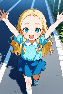 masterpiece,best quality,extremely detailed,1girl,child,9 years old,infant body type,flat chest,blonde hair,wavy hair,long hair,aqua eyes,thick eyebrows,show_forehead,smile,grin,bust,Beautiful and Healthy Teeth,sparkling teeth,