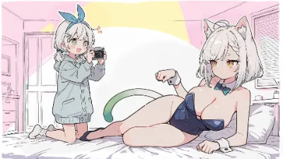 コントロールネット使用。Loraは高速化のみ使用 ①普通にtxt2imgで生成(メイド服+ナユタちゃん+キック) (ナユタちゃん⇒ミクに顔だけ変更) ②txt2imgのコントロールネットに①入れて、顔含めた周辺をマスクし、inpaint、プロンプトをミクちゃんに変更(メイド服+ミクちゃん+キック) 運が良かったのかそのままでも不自然じゃない・・気が (ナユタちゃん⇒プティちゃんに変更) ③ ②同様にミクちゃんをプティちゃんに変更して生成 見比べると不自然だぁ。 ④ ③をimg2img、ノイズ除去強度0.4で生成 ③よりはマシかと (ナユタちゃん⇒リンちゃんに変更) ⑤ ②同様にリンちゃんに変更して生成 リボンが切れてる+背景の修正痕がぁ... ⑥ プティちゃんと同様にimg2img ちゃんと影にもリボンある。。。 ・img2imgはノイズ除去強度上げると元画がからかけ離れちゃいますね(そりゃそうだ) ・ちなみにinpaintじゃなくて、普通のお絵描きツールである画像を切り抜いて貼って img2img+プロンプト(tag使った方が楽)で同じようにイケますね。 手間は今回やったものの方が圧倒的に効率が良いですね