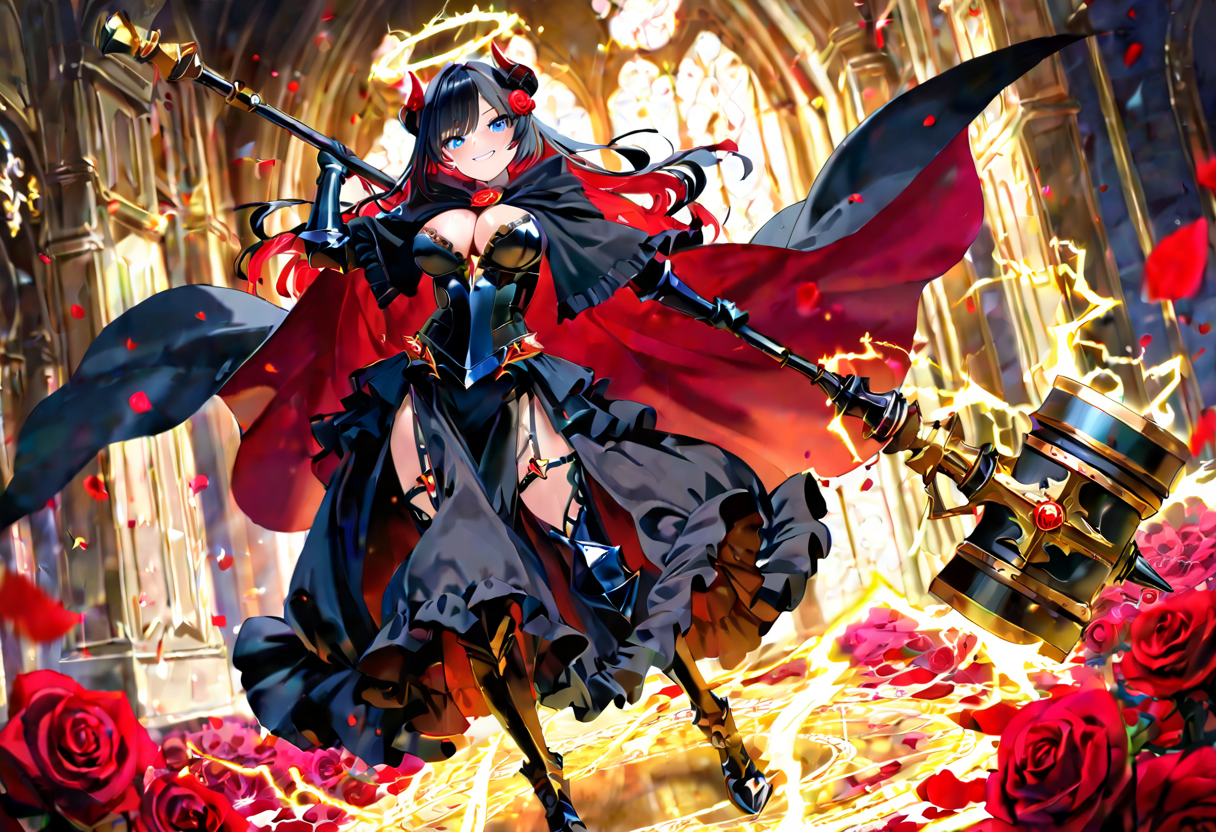 「新モデルでどんな武器を出せるかテストしたのでひとまず報告するぞ!」 「イラストに出せたのは剣、刀、槍、斧、ハンマー、鎌、魔法の杖、ガンブレード、チェーンソー、ガトリングガン、ビームサーベル、じゃな!」 「ほかにも出せるかもしれんがとりあえずこんなところなのじゃ~」 「失敗したものはレイピア、ギターアックスなどじゃな!」