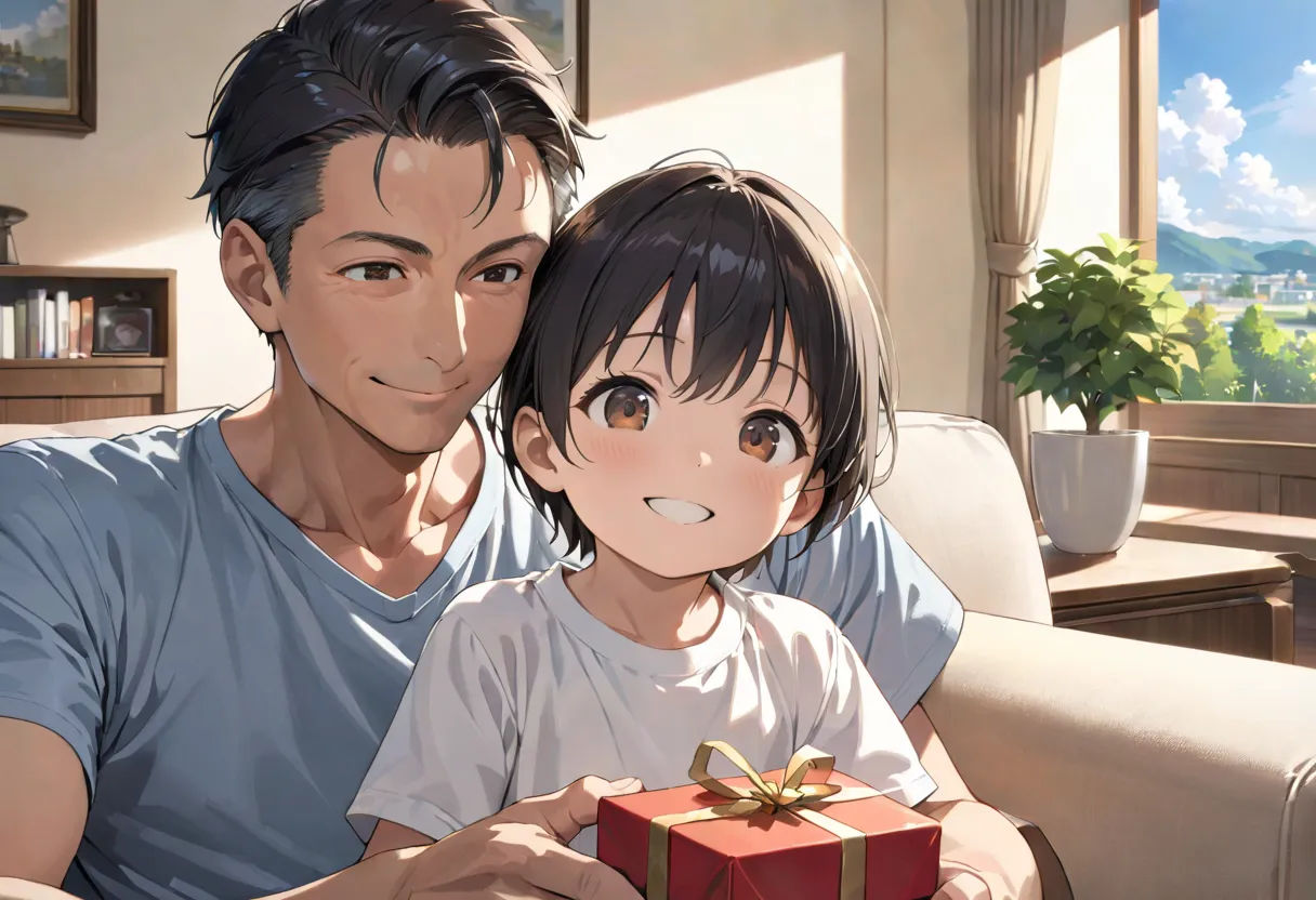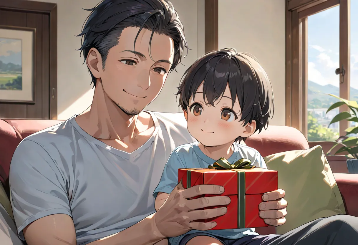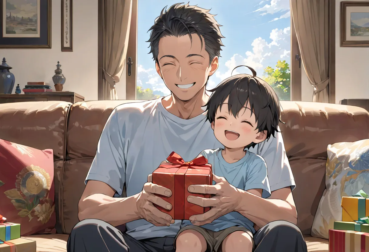 父の日に息子からプレゼントをもらって喜んでいるお父さんの姿をイメージして生成してみました♪ 今年は正式に父の日がお題として出題されて安心しました。 去年は父の日にも関わらず、別の記念日であるお題「和菓子」だったため、サイト内でちょっとした炎上騒ぎとなっていました。 和菓子そのものは自分は好きで良いお題だと思っていましたが、いかんせんタイミングが悪かったと思いました。 そこで有志の方が独自に父の日のタグを設定し非公式の父の日企画を開催していましたが、自分は参加出来なかったので心残りでしたが1年越しに父の日のお題に参加出来たので感無量ですw 一応、去年8月のお題「パパ」がありましたが、炎上の消火要素にしては少し遅すぎなような気がしますw やはり、メジャーな記念日系のお題は毎年固定で良いと思いますね。 ちなみに、母の日は5月のお題「母の日」にてkiwimixXLで赤のカーネーションの花束をプレゼントされて喜んでいるお母さんの姿と、去年5月のお題「母」にてChromaXLで母と子の愛情を感じる姿を生成し投稿していました。 14~15枚目は両親と息子の3人で生成したかったのですが、上手く生成出来ずお母さんと息子2人、または両親(カップル?)のみで生成されてしまいました。 プロンプトがあまり良くなかったからなのかも知れませんが、自分は基本的に1人のみを生成することがほとんどで稀に2人を生成することがあります。 しかし、現時点で3人以上の生成は去年4月のお題「思い出」と去年3月のお題「三姉妹」のみとなっています。 2人の生成は少し苦手になりますが、3人以上となると髪型や髪色、服装等を区別して生成するのに苦労してしまうため避けていましたが、いずれお題「三姉妹」のような複数人のお題が出題されると思うので苦手なシチュエーションを克服出来るように努めたいです。 2025年5月のお題「母の日」 https://www.aipictors.com/posts/589645 2024年8月のお題「パパ」 https://www.aipictors.com/posts/428799 2024年6月のお題「和菓子」 https://www.aipictors.com/posts/389595 2024年5月のお題「母」 https://www.aipictors.com/posts/364398 2024年4月のお題「思い出」 https://www.aipictors.com/posts/330248 2024年3月のお題「三姉妹」 https://www.aipictors.com/posts/301268