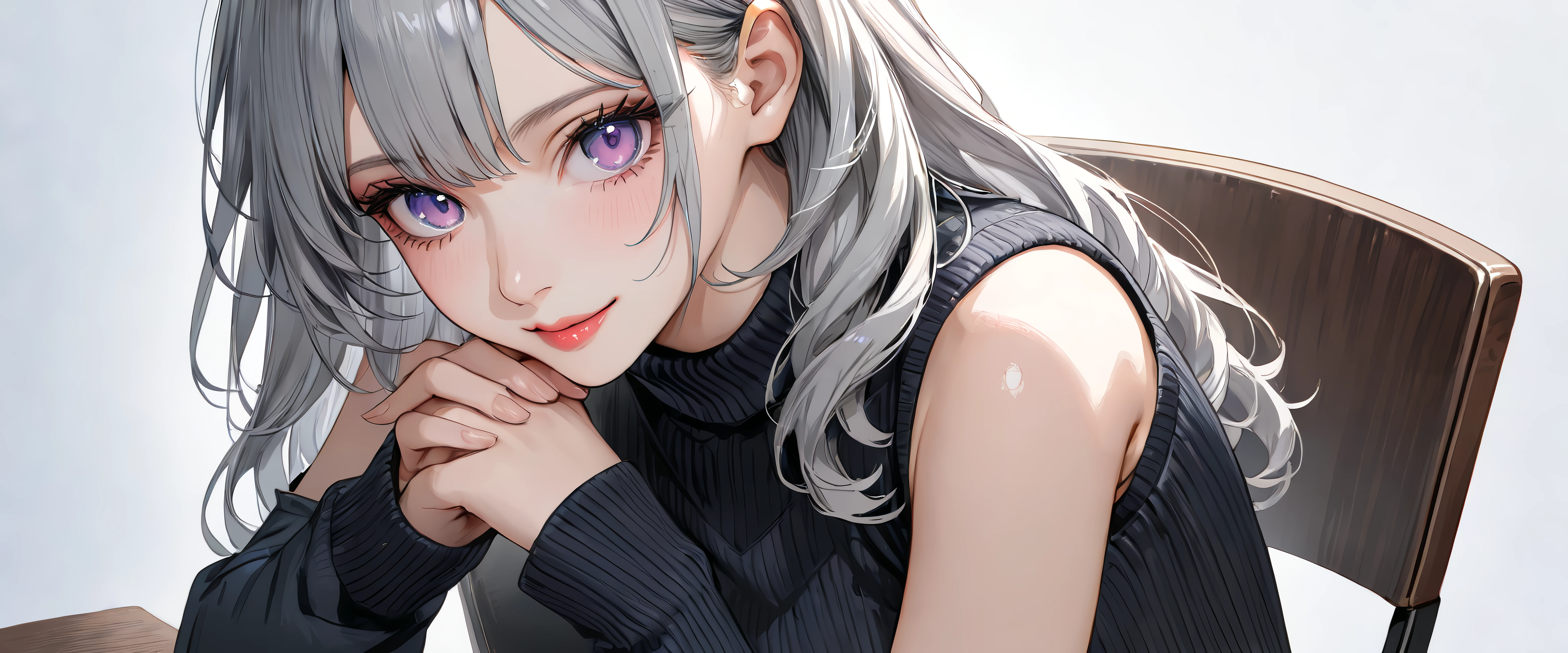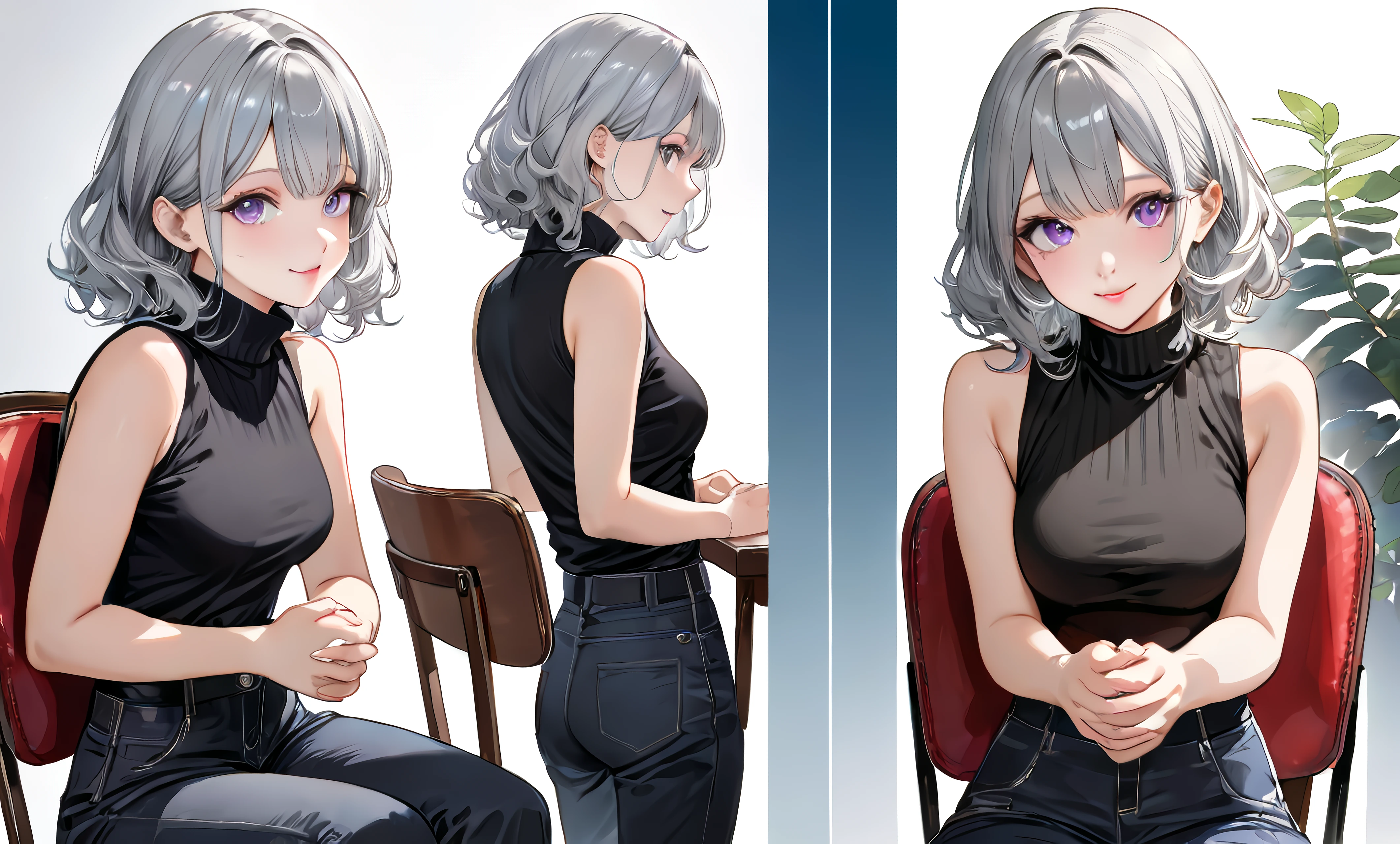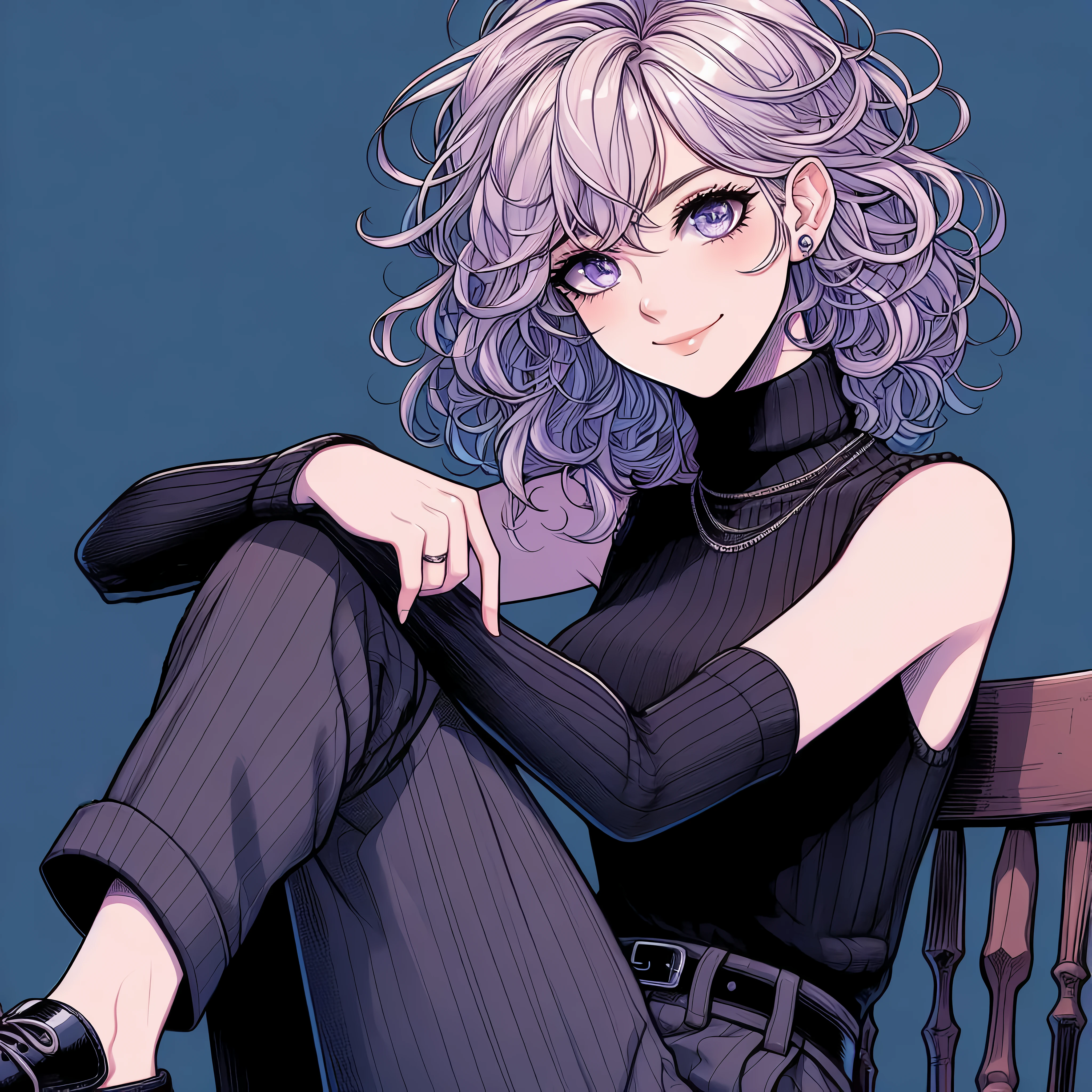【お題】 ノースリーブ Curly Short Hair タートルネックの袖なしニット(黒) センタープレスパンツ(こげ茶色) 黒革ローファー ①-②:Bing Image Creator ③-⑥:animaPencilXL_v310 ⑦ :zukiAnimeILL_v50 ①②くらいのタッチがだせるモデルやプロンプトを模索中ですが、うまくいっていませんw